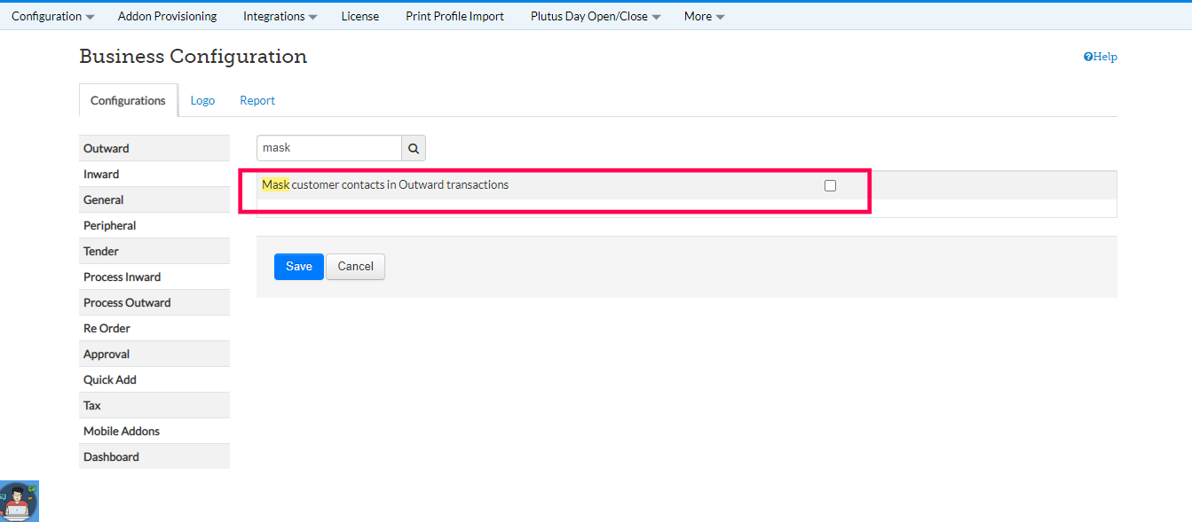1. Added a new configuration " Mask customer contacts in Outward transactions" to