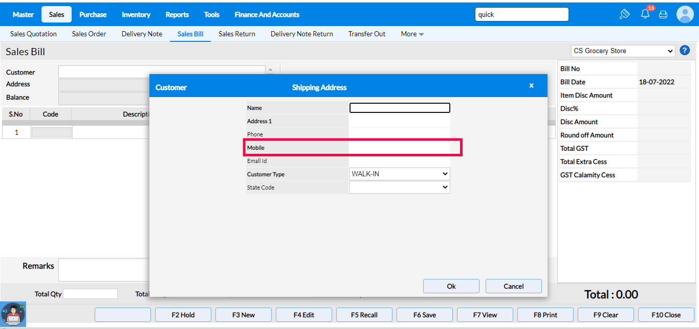 3. 10 digits phone number validation added in Quick add customer screen for Indian