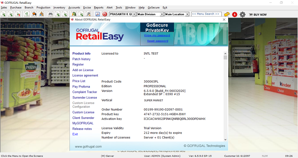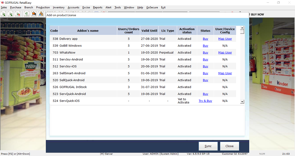 2. In the About GOFRUGAL Serveasy select 'Add on License'.