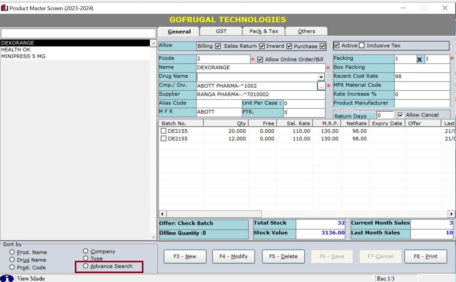 Steps 1: To do advance search, open any masters in ManageEasy, enable the option Advance search that shows left bottom corner as shown in the below image.