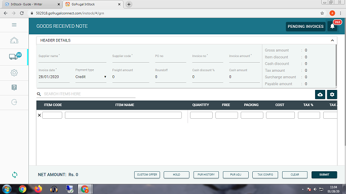 3. Enter the supplier details and verify the items, quantities and rate by comparing with the purchase invoice.