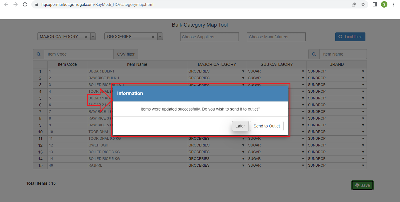 Step6: If you want to send this updation to the outlets then click on 'Send to outlet' other wise click on 'Later'.