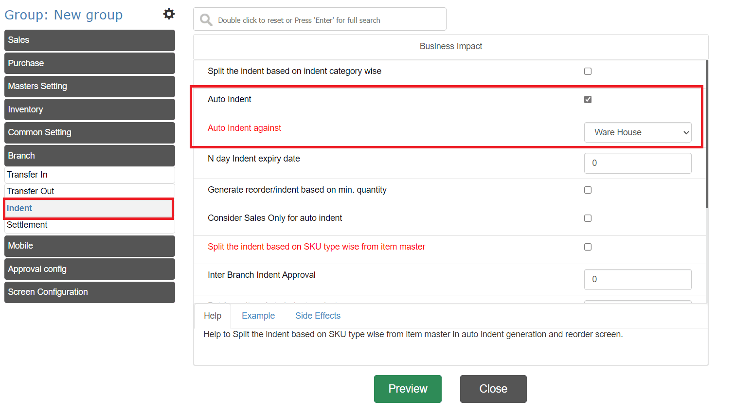 1. The indent can be raised multiple times based on the following configuration. Under the Centralized Tools Configuration screen, select the Group and then Select Branch>Settlement. Enable Generate Auto indent Multiple times.