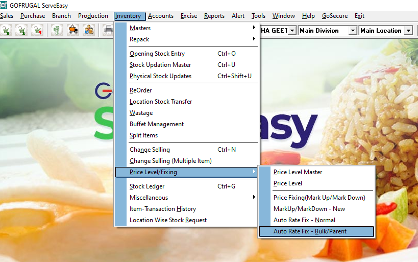 Step 2:Next moves to Auto rate fix Bulk/Parent,under inventory->price Level/fixing->Auto rate fix Bulk/Parent.