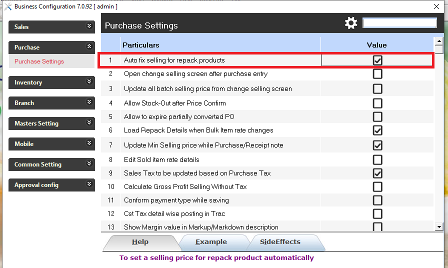 Step 1:Need to enable global configuration,under->tools->configuration manager->configuration.Enable the config named "Auto fix selling for repack products".