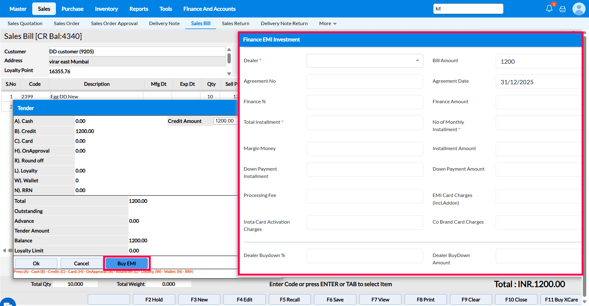 2. If you untick/clear this checkbox: the system Disable the Buy EMI Option in Tender during billing.