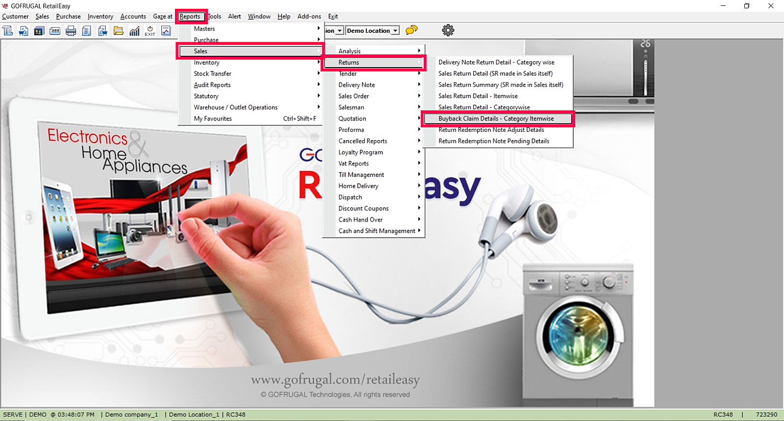 Step 1: Go to Reports > Sales > Returns > Buyback Claim Details - Category Itemwise