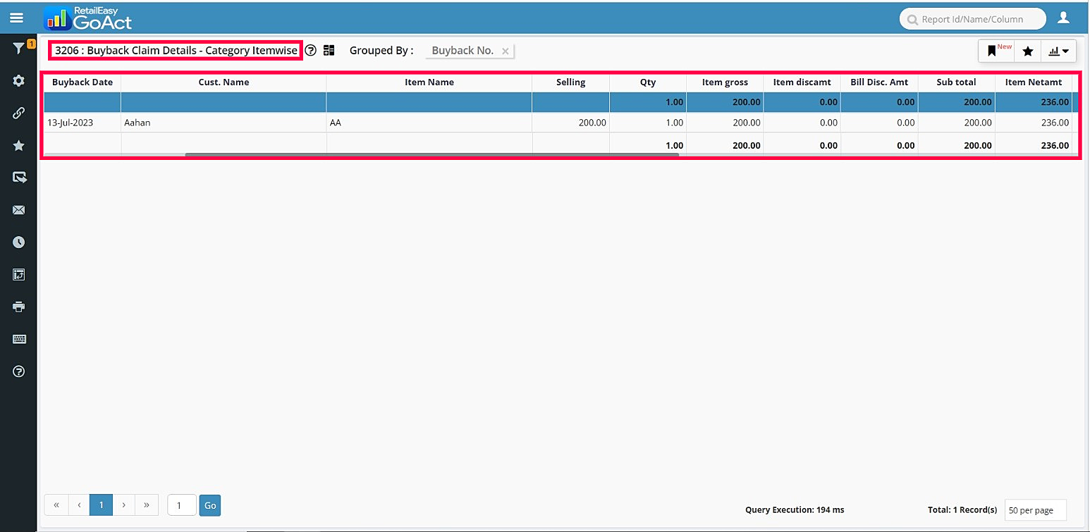 Step 2: Buyback Claim Details - Category Itemwise report will appear on the screen.