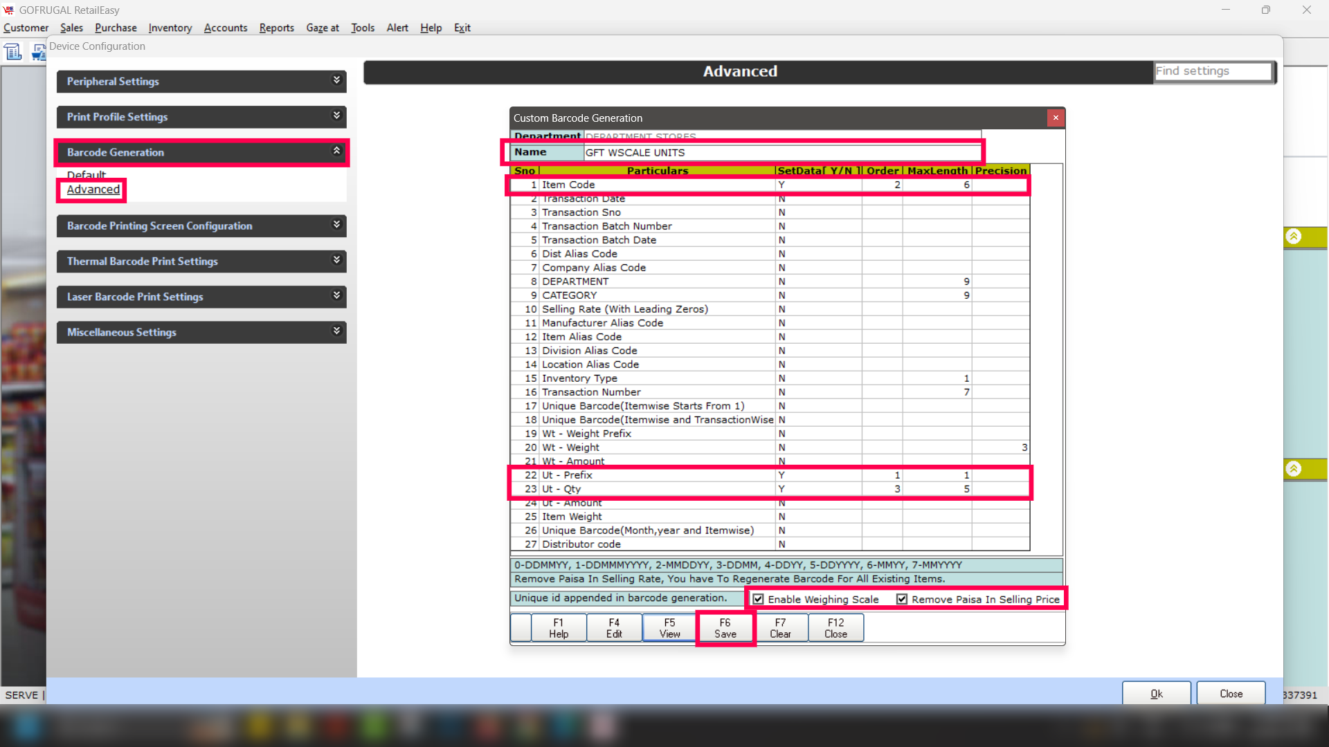 8. Select the Enable Weighing Scale checkbox & Remove Paisa in Selling Price checkbox.
