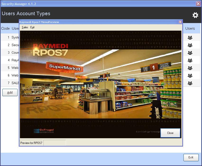 Click the Menu Preview button in the Security Manager screen to view the preview.