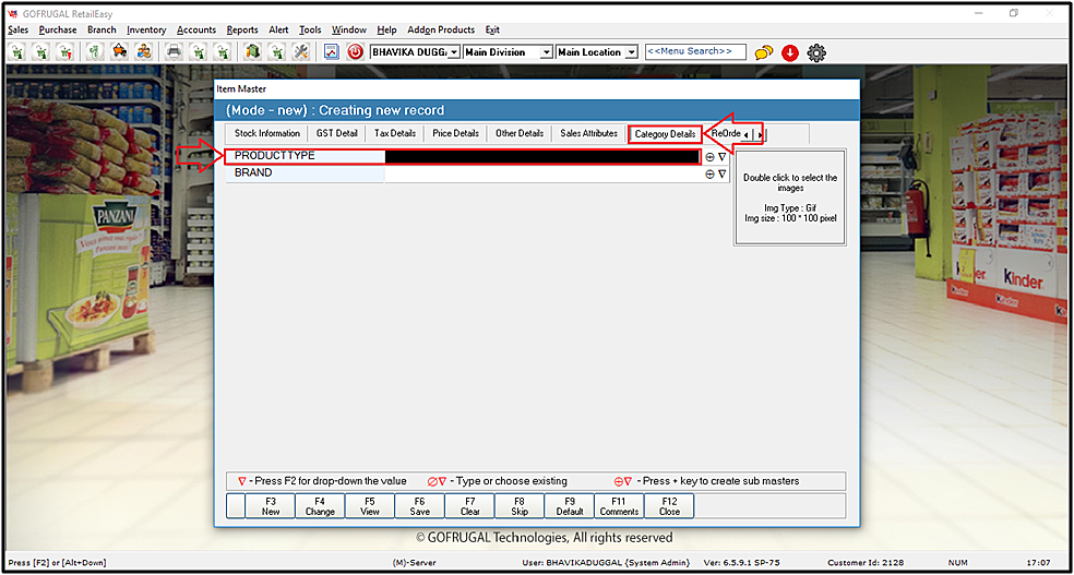 Step: 7 Click on 'Save' to save the details.Step8: After that the category will be saved in your records, then you will again be redirected to the 'Item Master' screen.