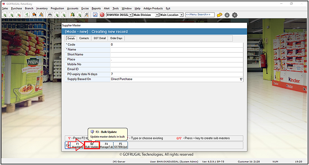 Step 1: Press Ctrl + F3 Bulk Update button in the Item Master window.