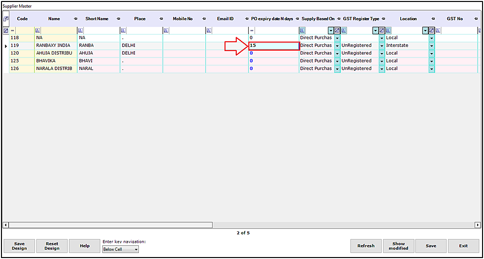 Step 4: Then click on the Order Days and out the desired value in the "PO Expiry (in Days)" field and then click on F6 Save to save the settings.