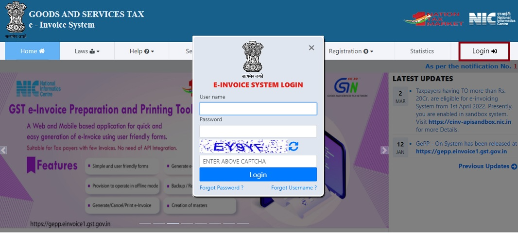 Those who are using the login credentials for Auto E-Way Bill generation, the same login details can be updated in E-Invoice.