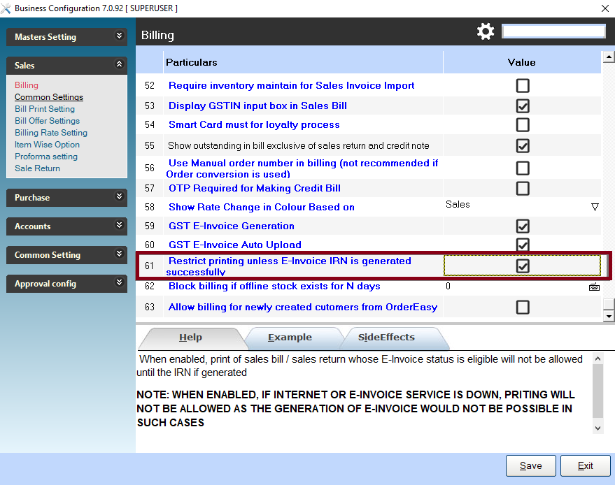 10. Enable 'Restrict printing unless E - Invoice IRN is generated successfully'