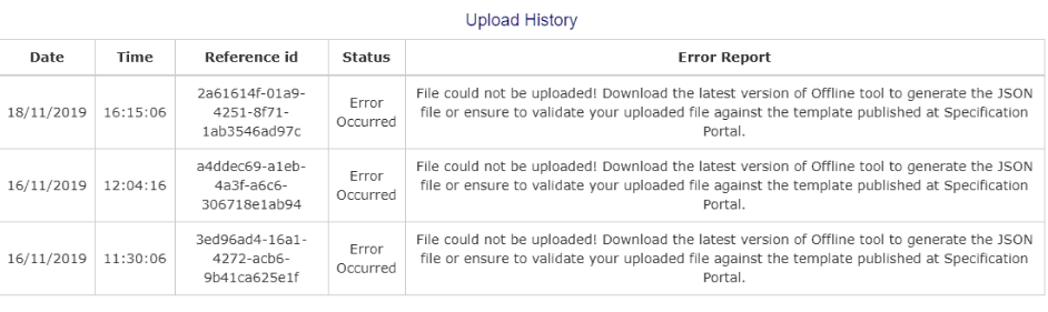 If you get an error while uploading the exported JSON from TFA to Govt portal, as like given below, please follow the given procedure.