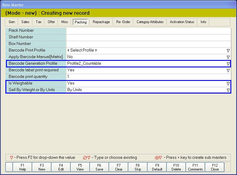 B. In the Item Master, select the item is weighable, sold by Units and map the corresponding barcode profile (Refer the above screen shot for better understanding)