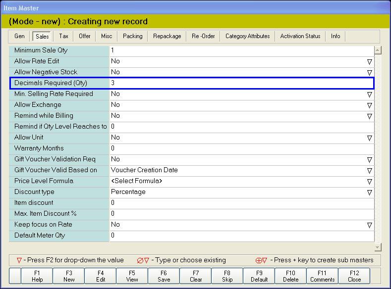 In Sales Tab, enter the value '3' in the Decimals Required (Qty) field (applicable for weighable items only)