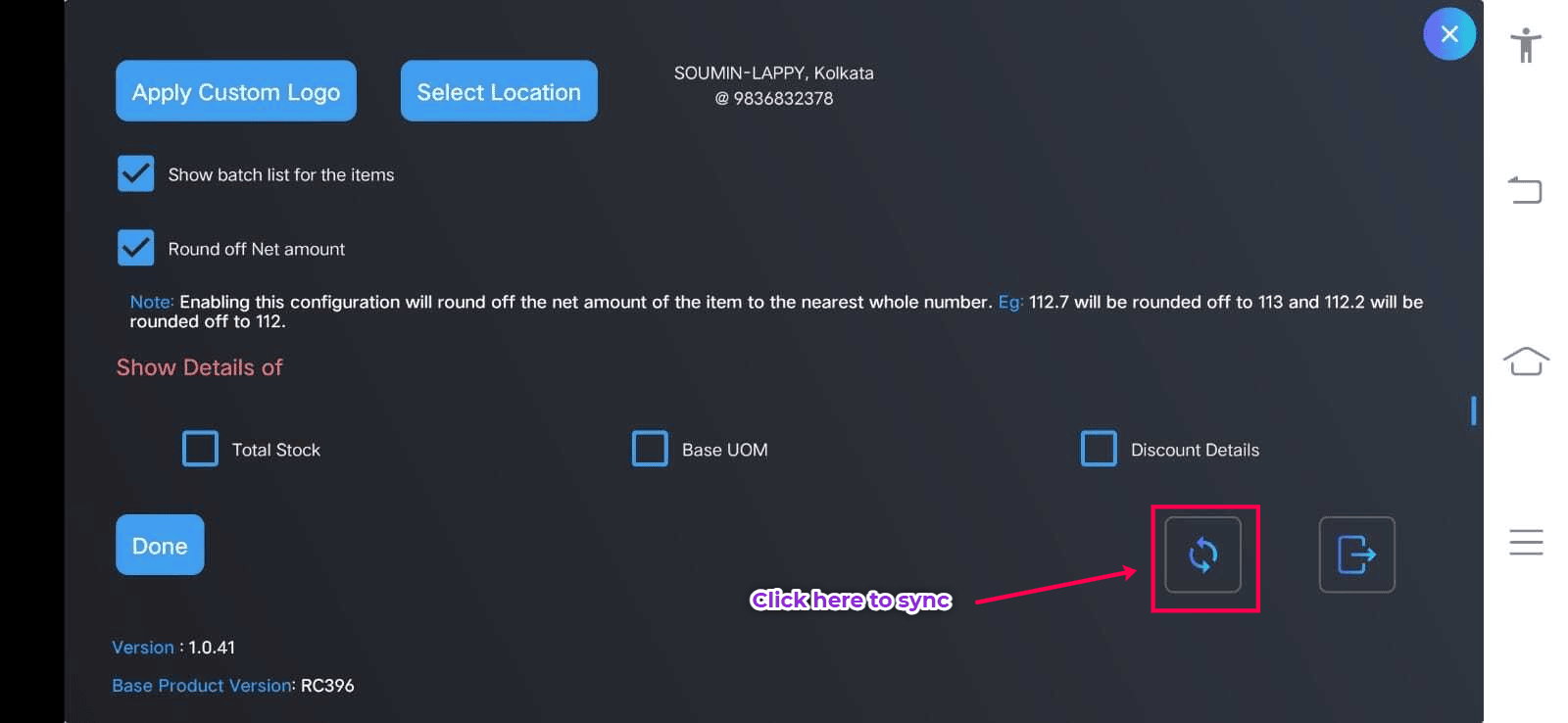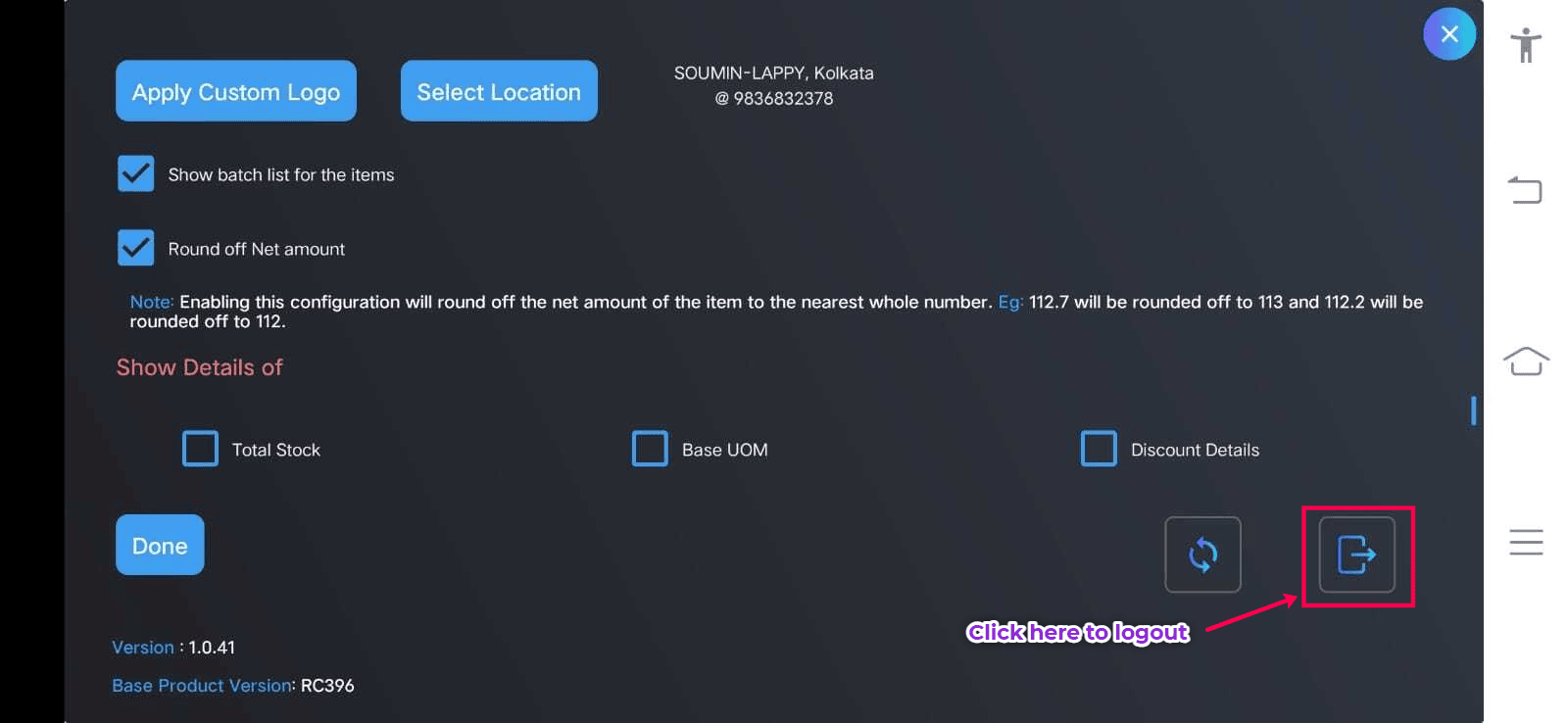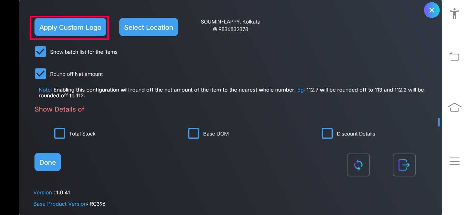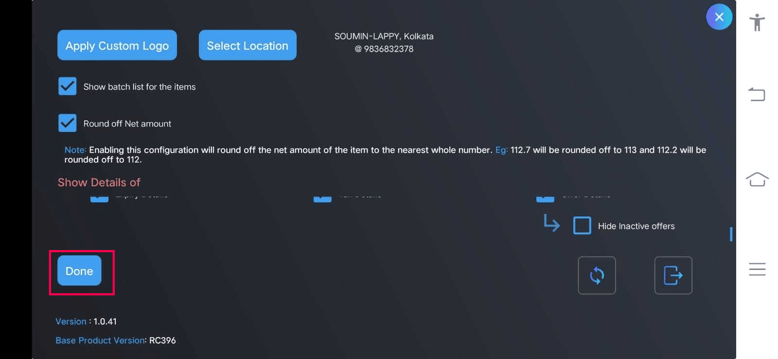 Make sure to tick the boxes next to "Show batch list for the items" to display various batches, and "Round off Net amount" to round the net amount if it has any fractions.
