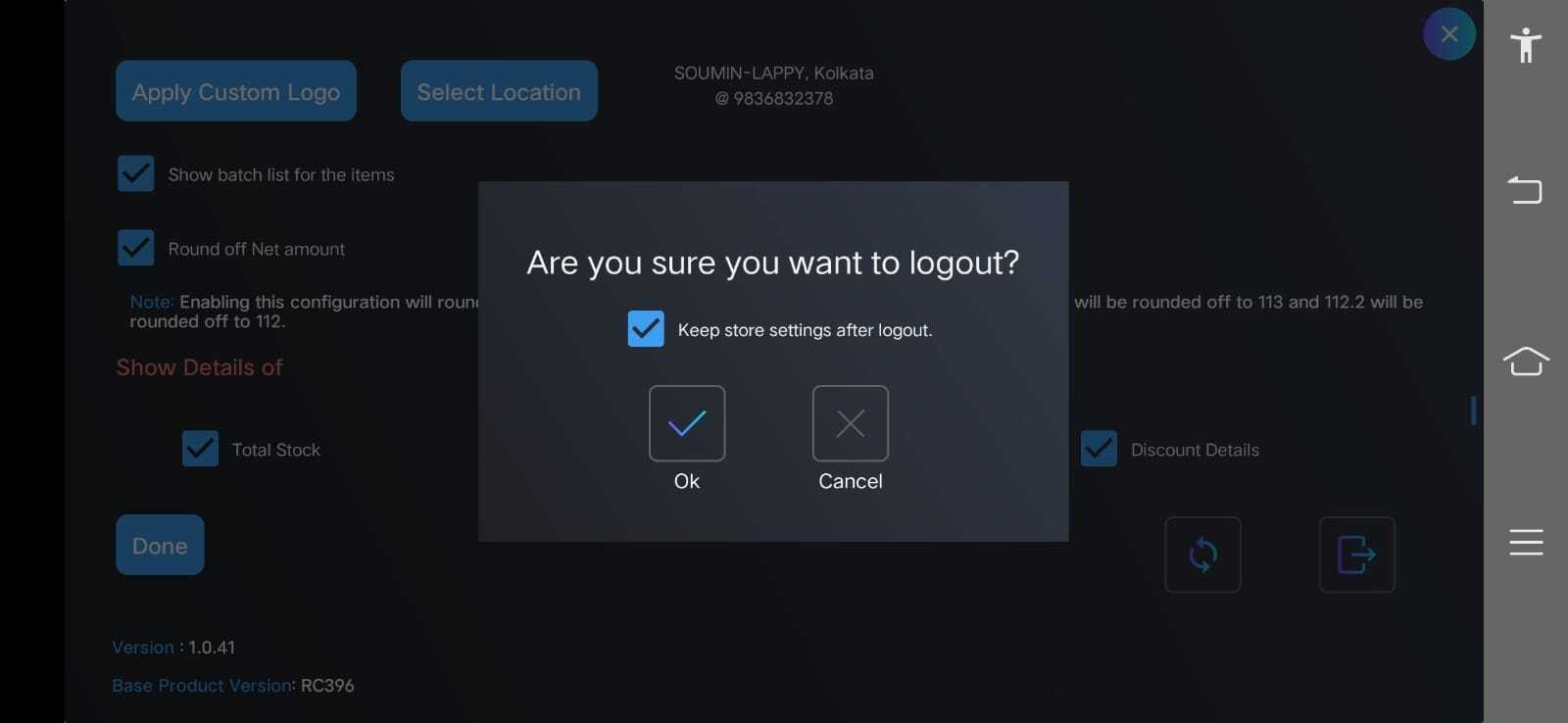 Once you click the logout button, a confirmation popup will appear. Click on ok to logout from the device.