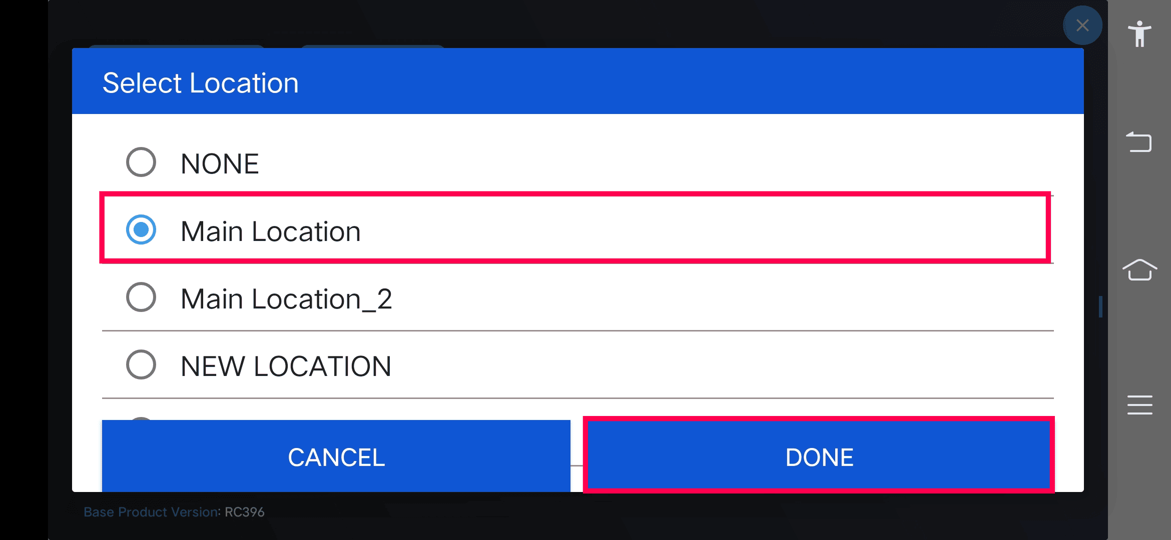 To change or select a different location from the settings, click on the "Selection Location" button.