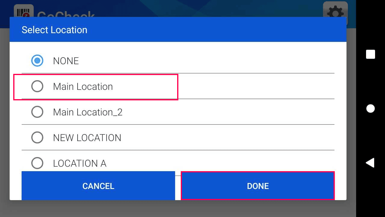 To synchronise items when new ones are added in the POS and change the settings of the GoCheck App, simply click the settings button located in the top right corner. Enter the POS customer ID to continue with the sync or to log out.