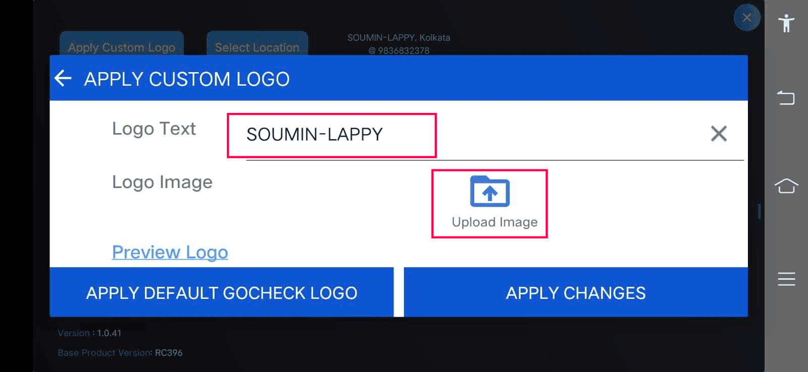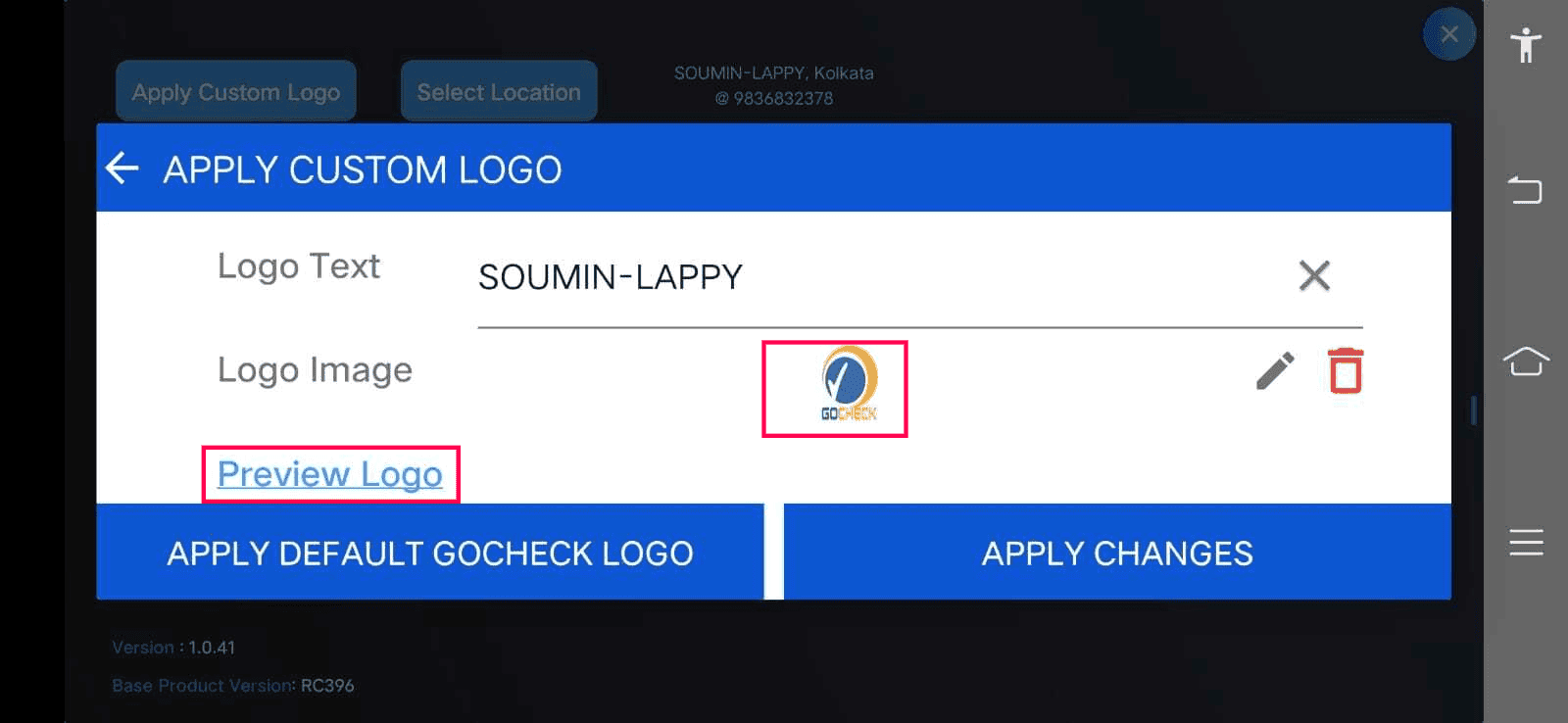 The logo preview will look like the below image. Click on the "Apply Changes" button to apply the changes or click on the "Apply Default GoCheck Logo" to set the default logo.