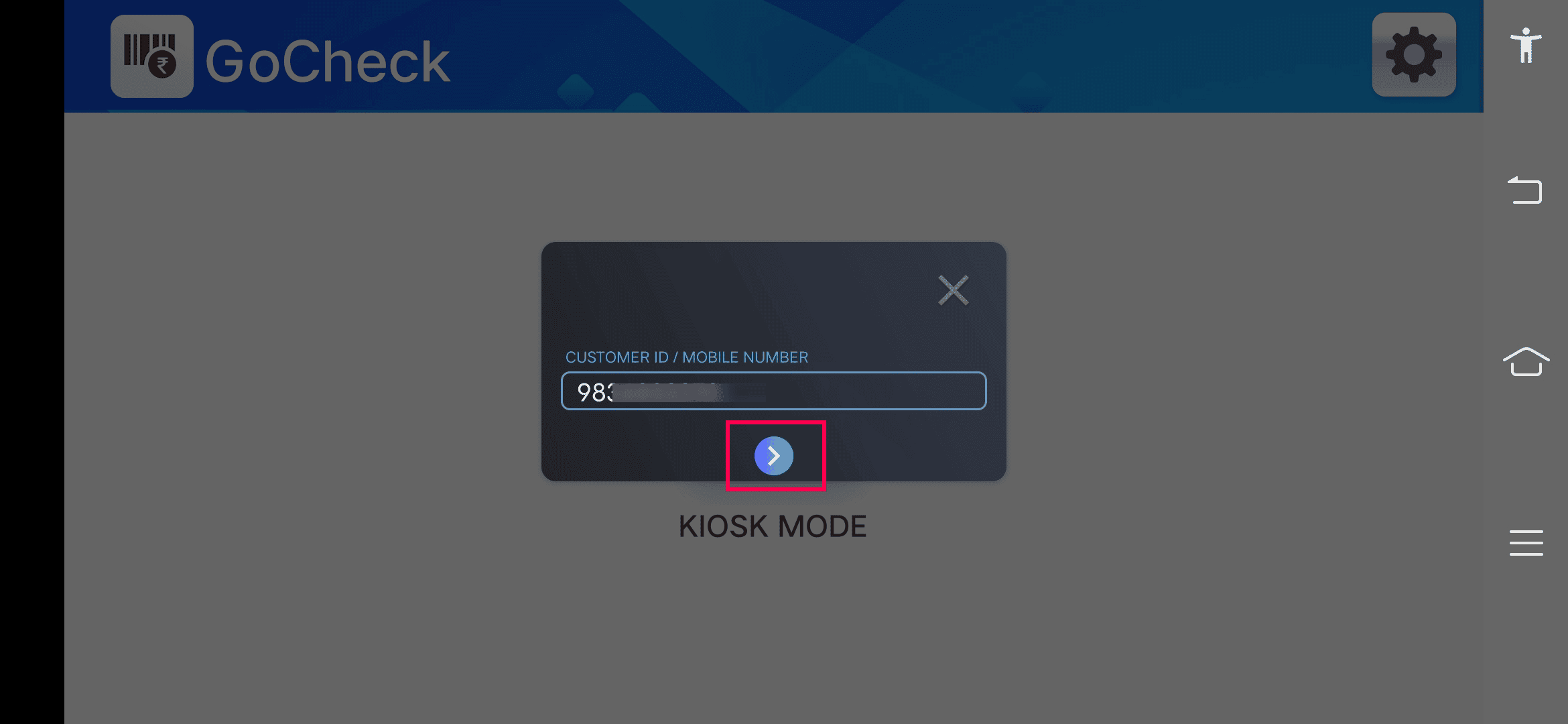 The customer ID/Mobile No is provided as part of the credentials, ensuring that the customer cannot access the settings mode.