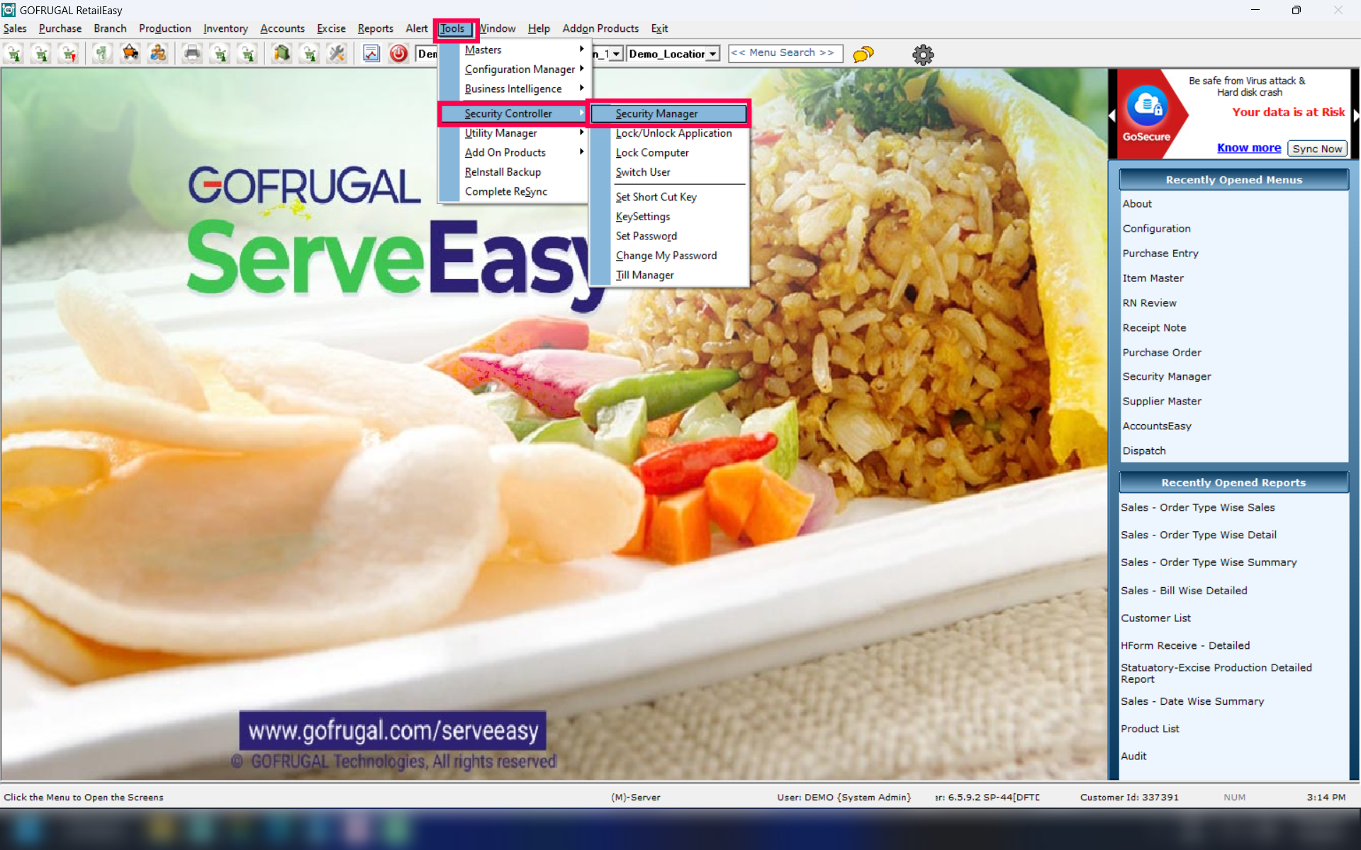Step 1: Navigate to Tools > Security Controller > Security Manager