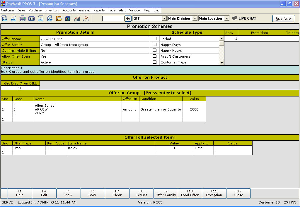 4. Click Save to save the offer.5. Creating Group - Bill Disc%