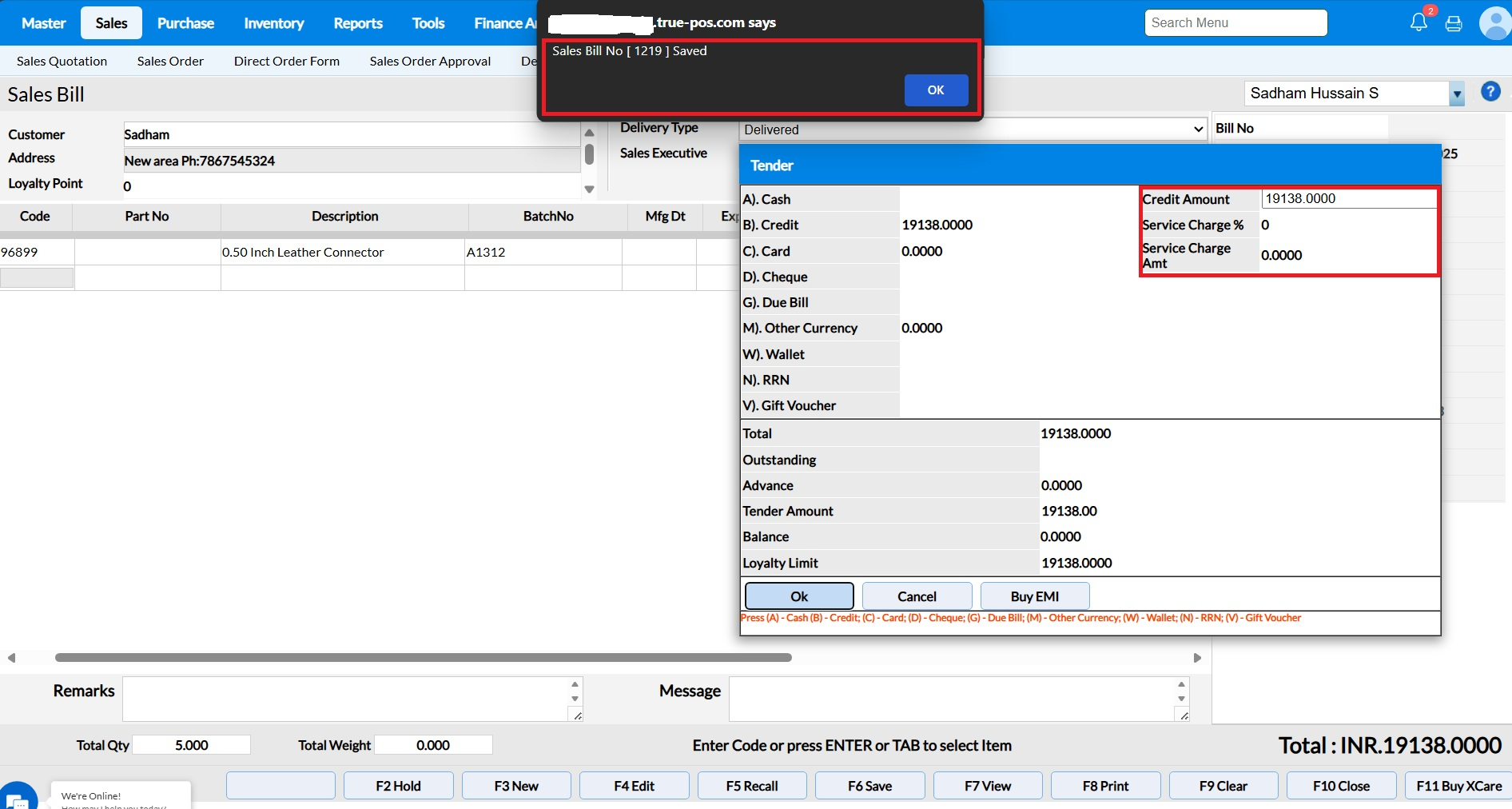 Specify the Credit Amount and click Ok to save the Bill.