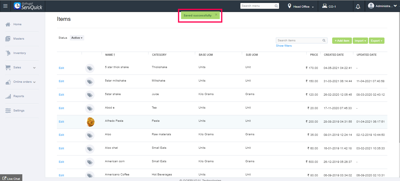 Thus we have created variants for a new item. We can create any number of variants for an item using ServQuick.