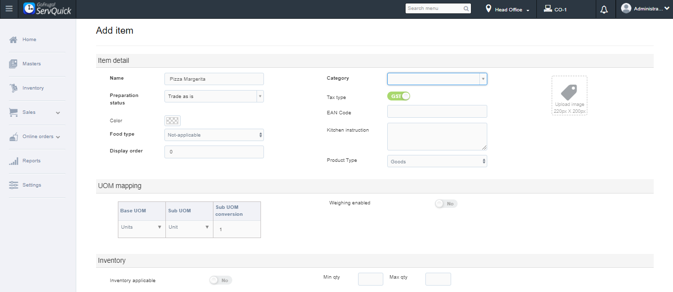 You can enable/disable the Apply for Online option based on your preference. If you want to display the variant type on the sales screen, then you can enable the Apply for Online option.