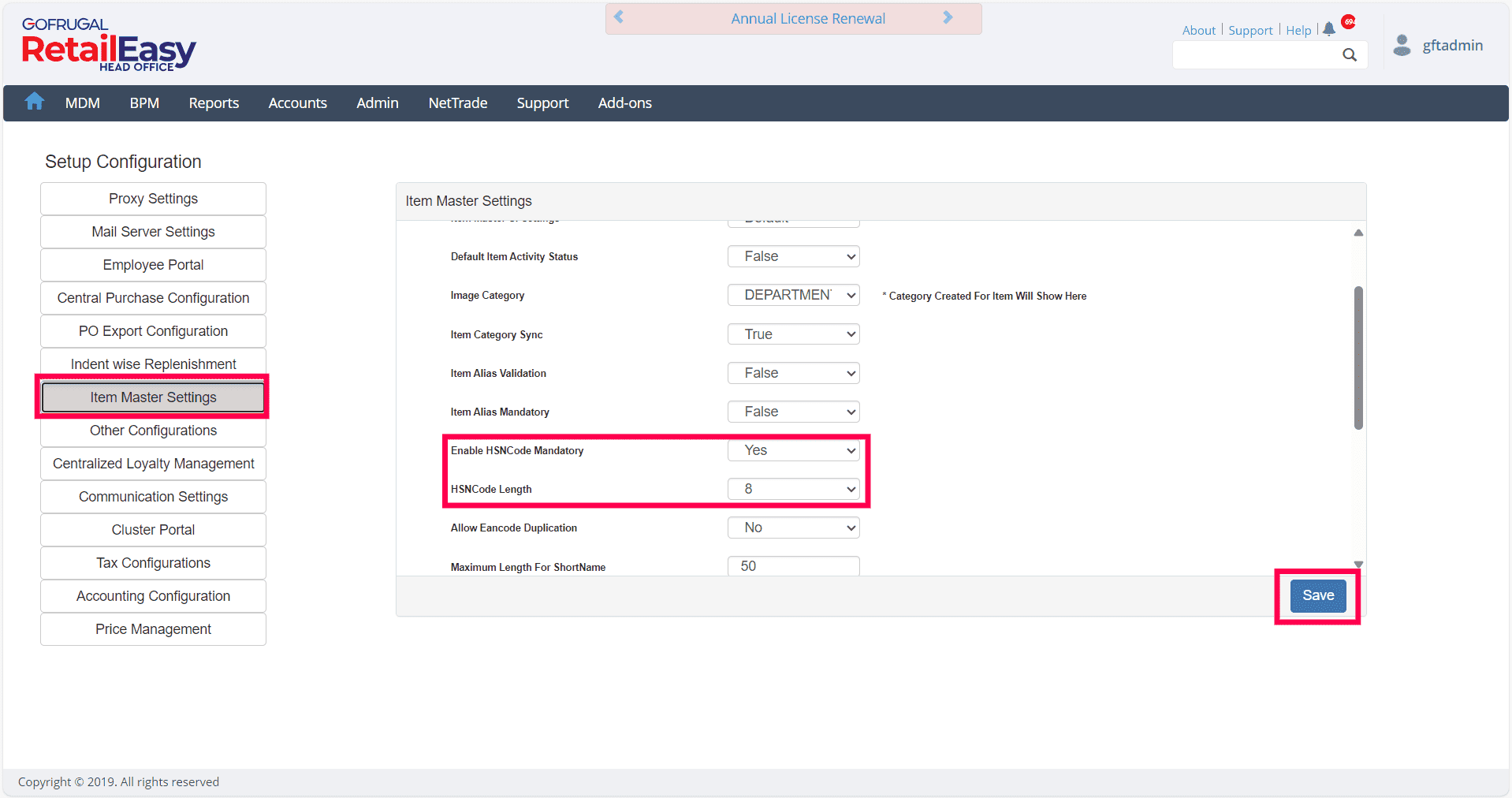 Locate the Enable HSN Code Mandatory field and set it to Yes.