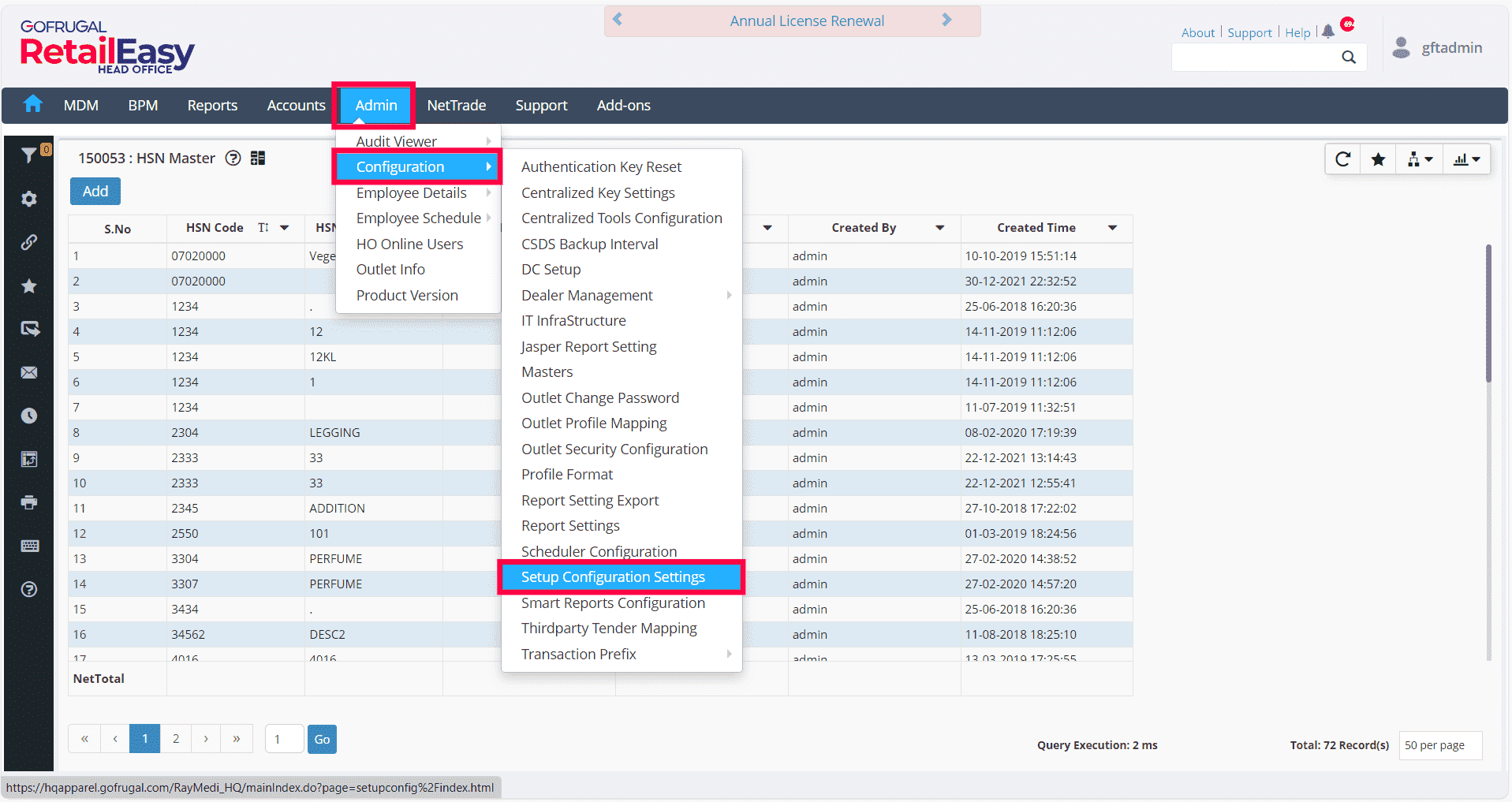 There is also a configuration to disable the HSN code description. Below are the steps to disable the description. Go to Admin > Configuration > Setup Configuration Settings. Go to Other Configurations. Locate and set the Enable HSN Description ...