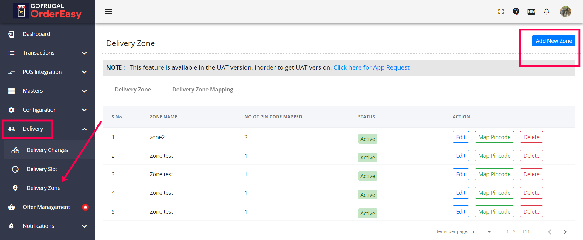 Step 6: You will find the option to add new zones under the delivery zone option at the right top corner