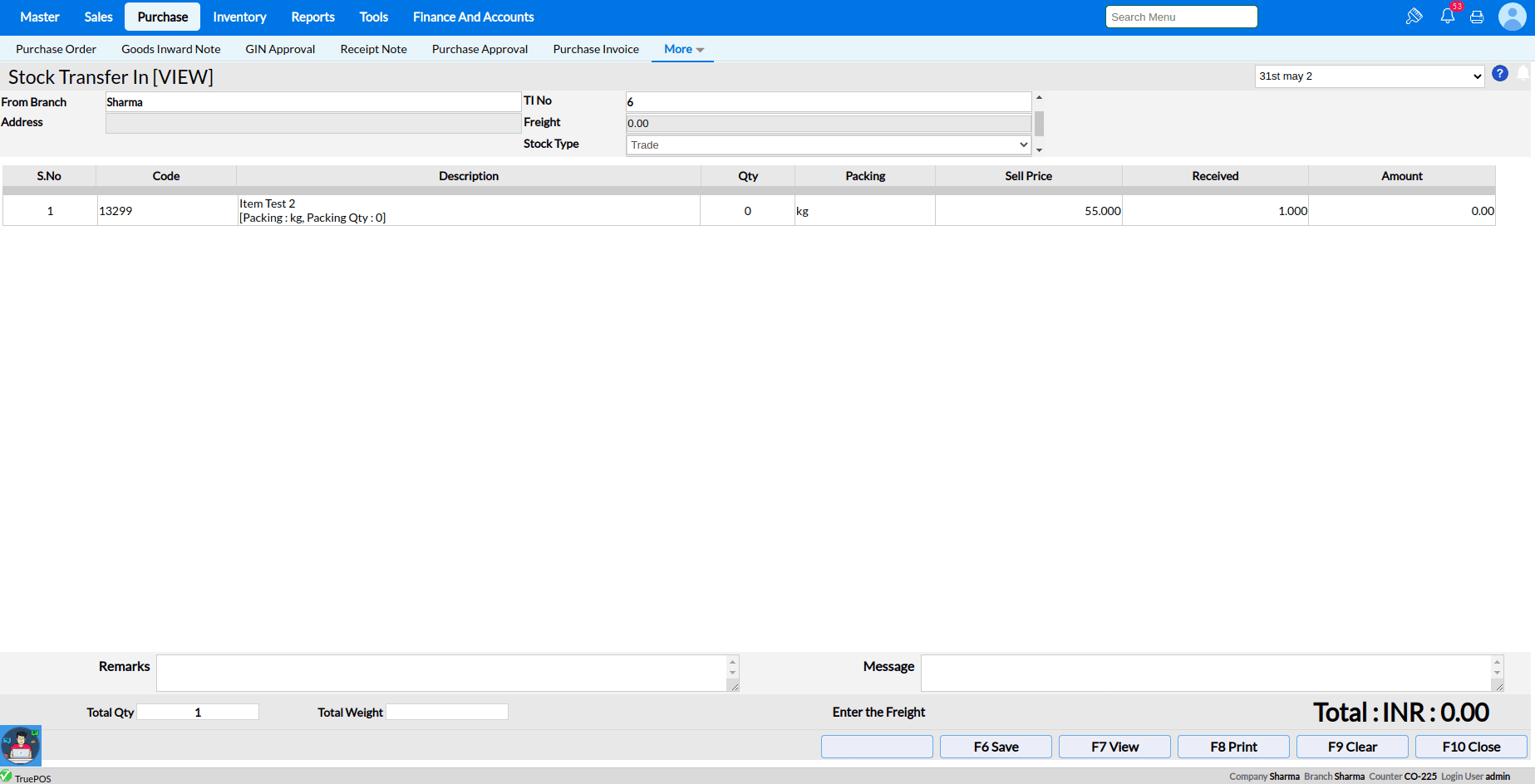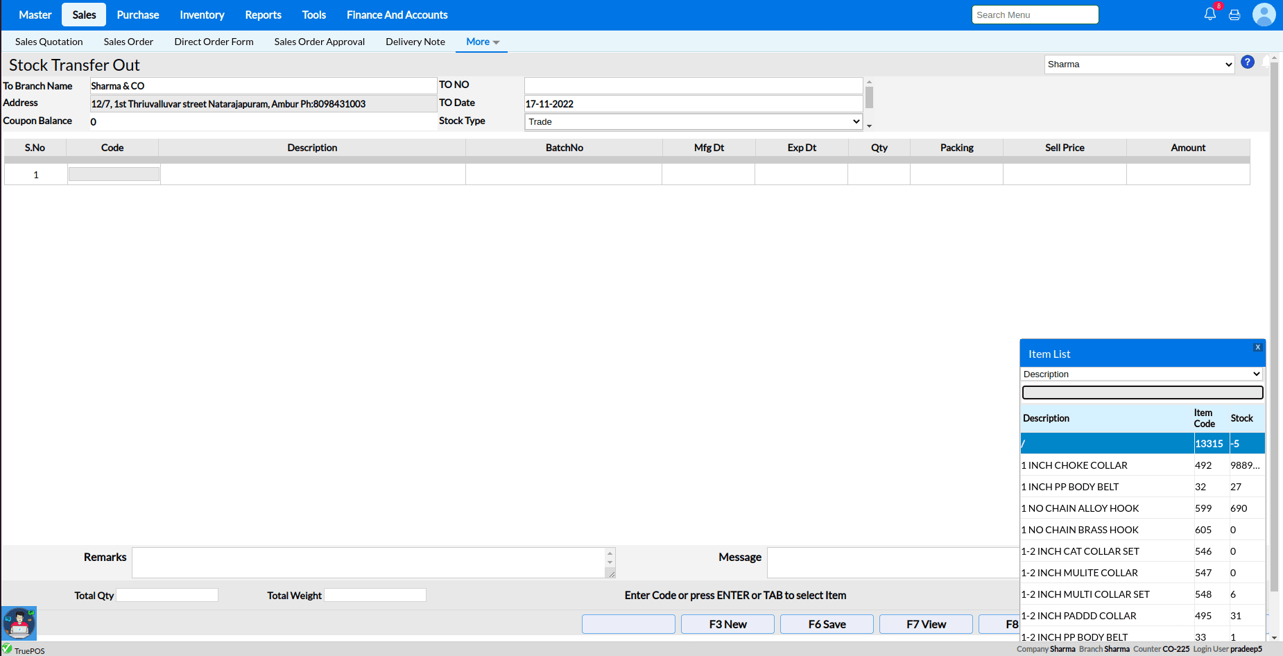5. Login with Approval manager/ Admin click on Sales → More →Transfer Out Approval and Auto TI