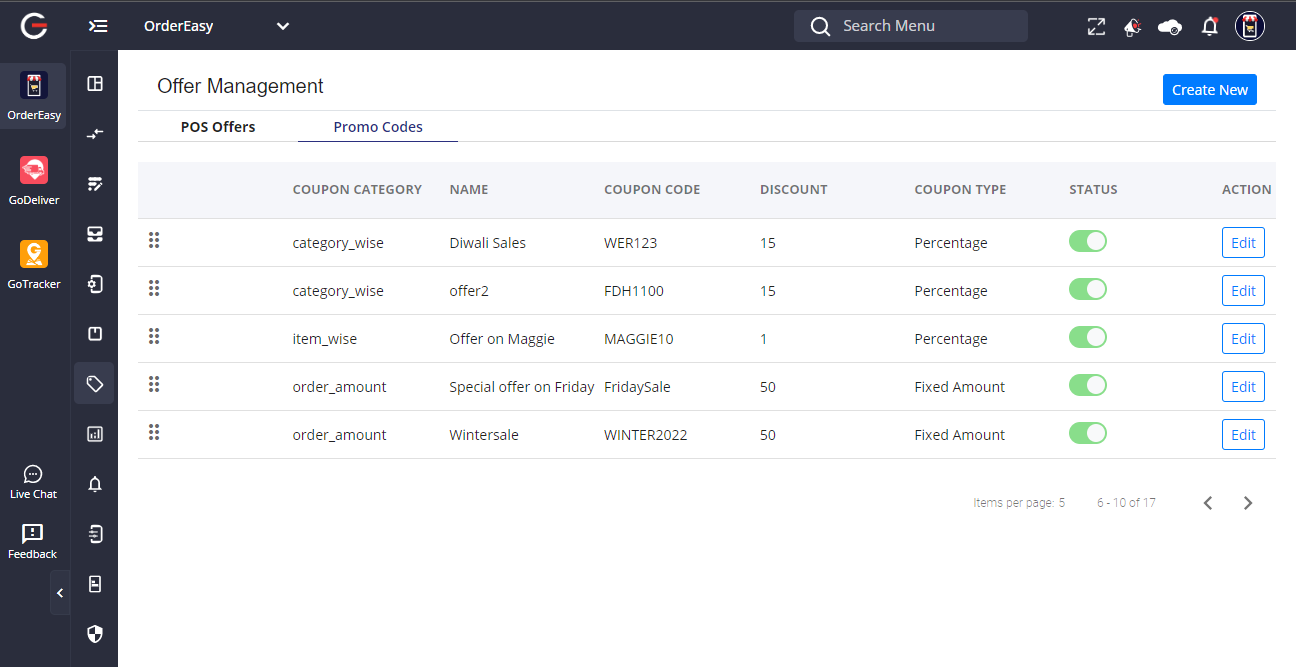 In the current market scenario, big E-commerce firms like Flipkart, Amazon, Snapdeal etc., are using promo codes to draw more customers to their websites and increase their sales. Now you can also use this promo codes feature in your OrderEasy application to increase the sales.
