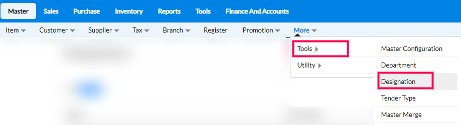 Step 2: From the drop-down of the More section, click on Tools > Designation