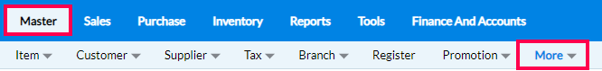Step 1: In the main tab of RetailEasy on-cloud, click on Master > More