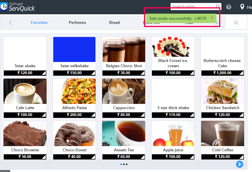 Thus, the sales bill creation is made easy with GoFrugal ServQuick.