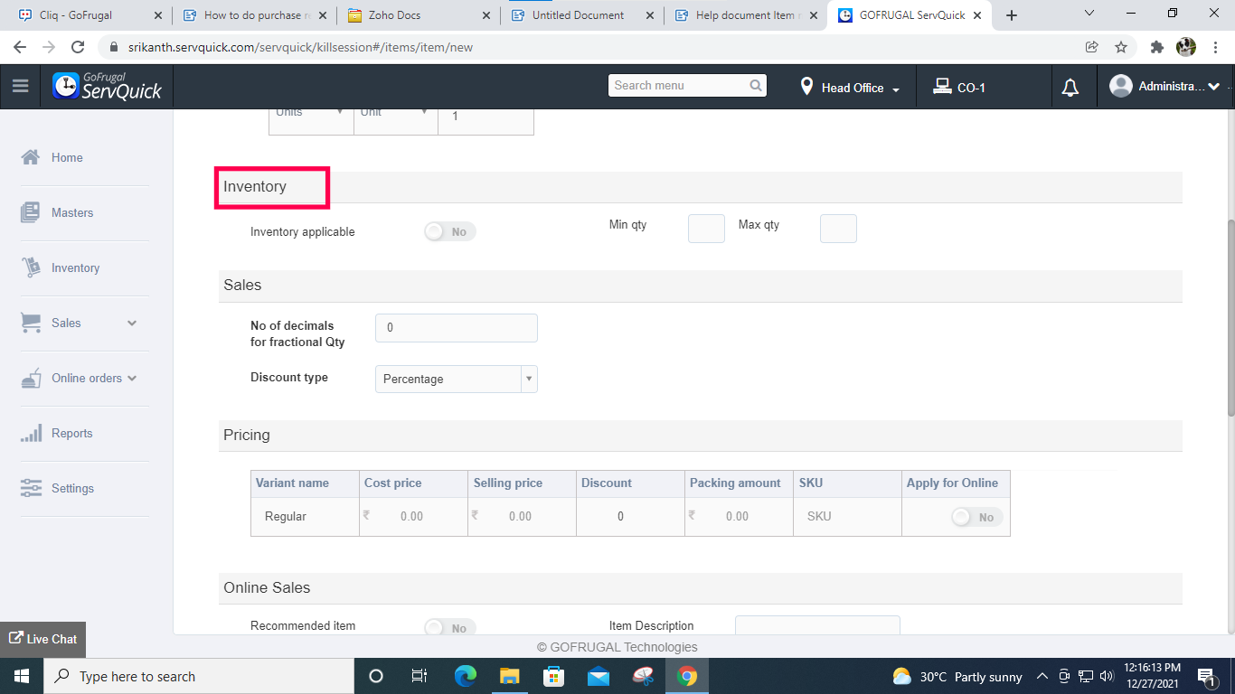 ☆ You can select inventory applicable as 'yes' if you want maintain stock of a item.