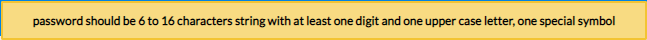 Note: If the Password is not set following these conditions, an error message will appear as shown