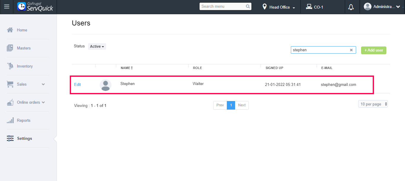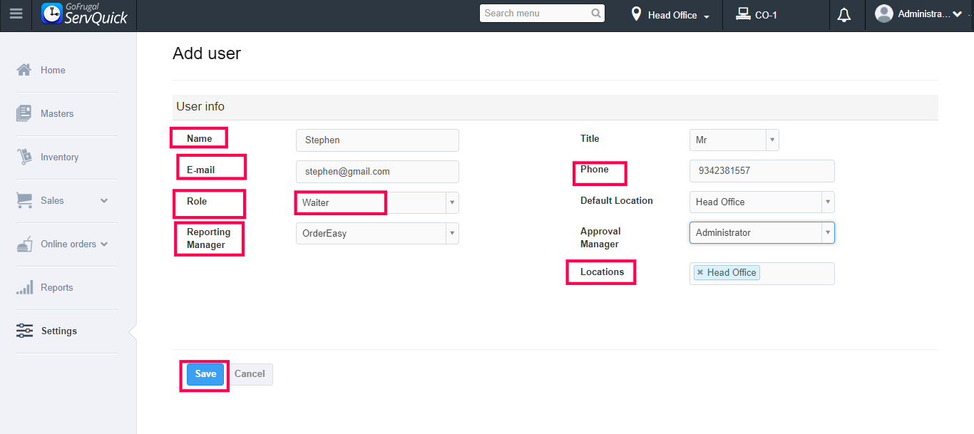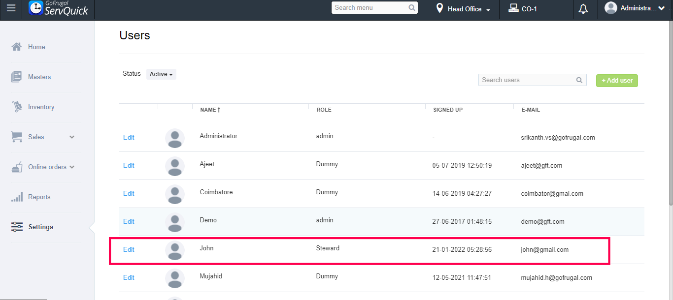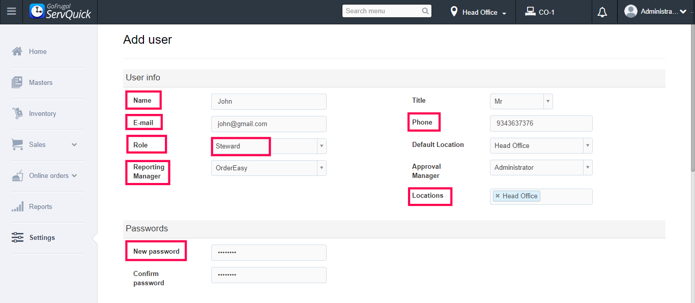 Stewards are the ones who pick up orders from customers and give commands to the waiters. If a new steward is getting hired and ready to work with your business, you can create a designation for him/her by adding them as a new user using this Add new user feature in ServQuick.