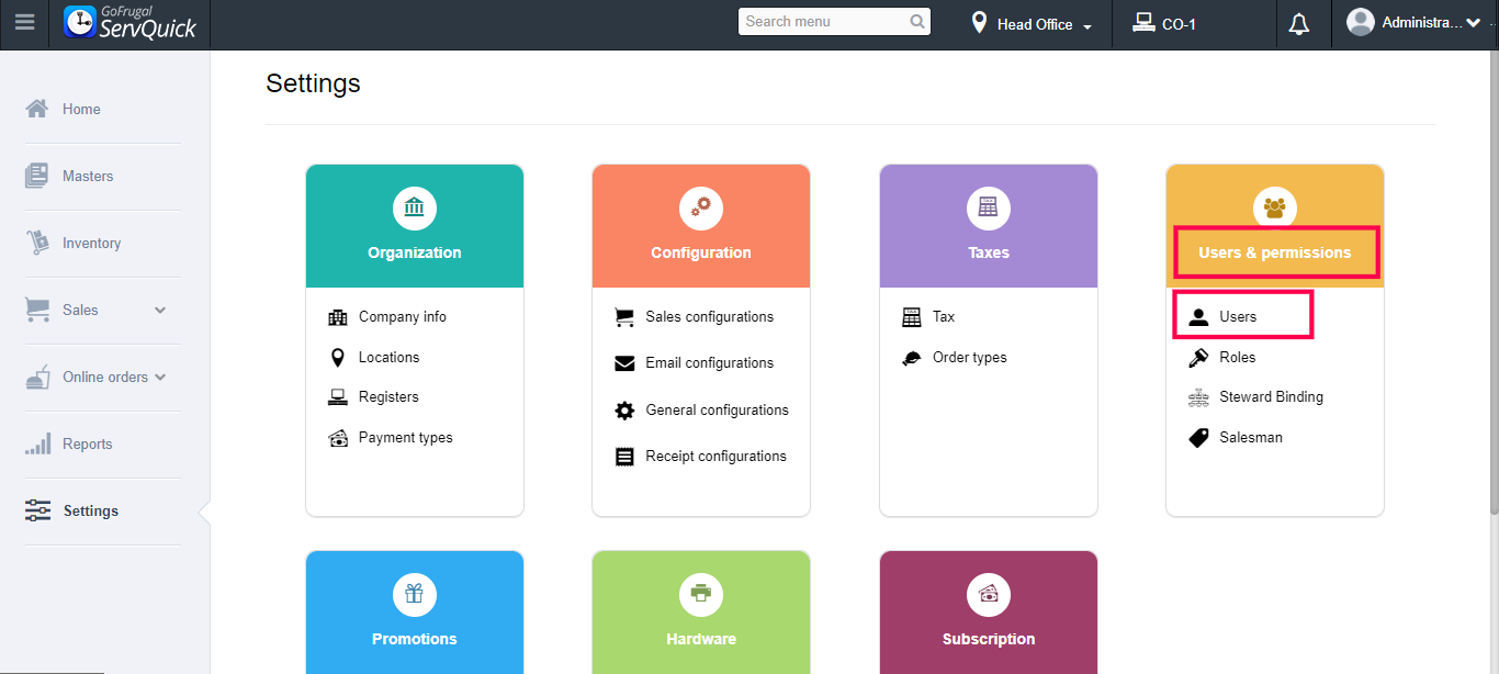 Steps to create Steward and Waiter users in ServQuick