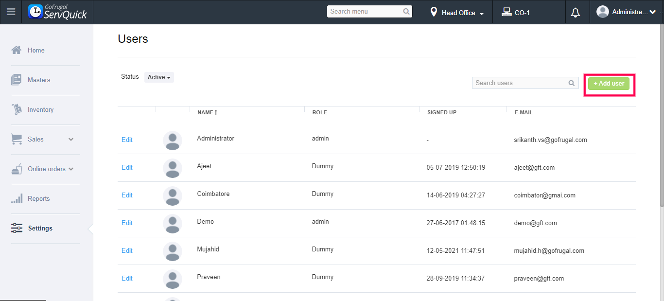 Step3: Click on Add user at the top right corner of the screen