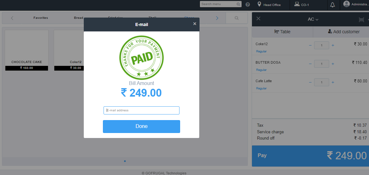 Now, the bill amount has been paid and the email id can be entered for receiving the payment receipt.