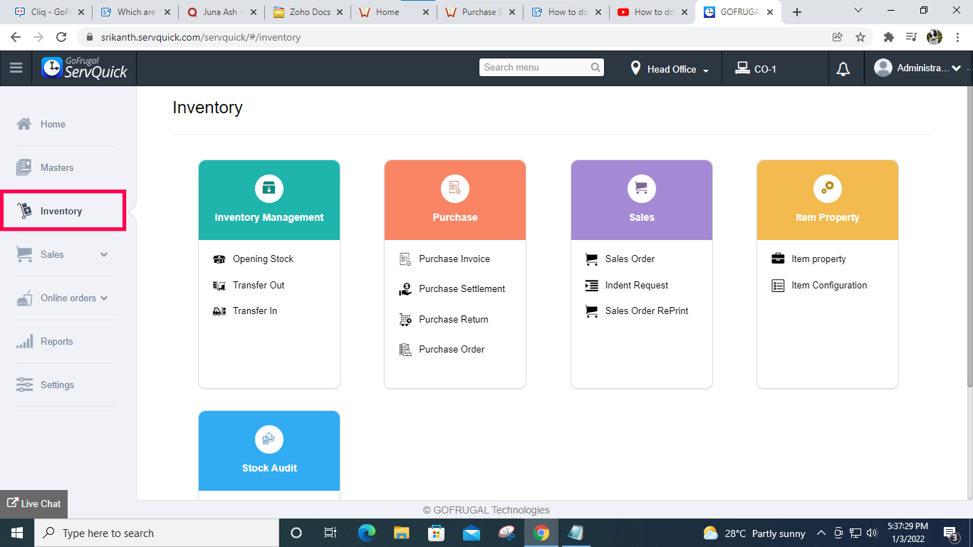 Step1: To make payment to the supplier > click on Inventory.