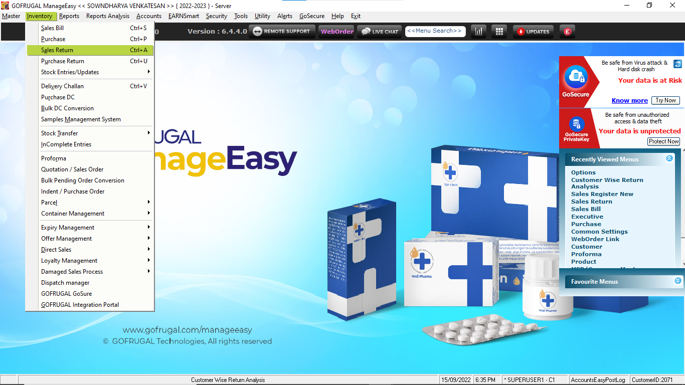 3. Go to 'Inventory' ---> click 'Sales Return'