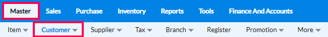 Step 1: In the main tab of RetailEasy on-cloud, click on Master > Customer.